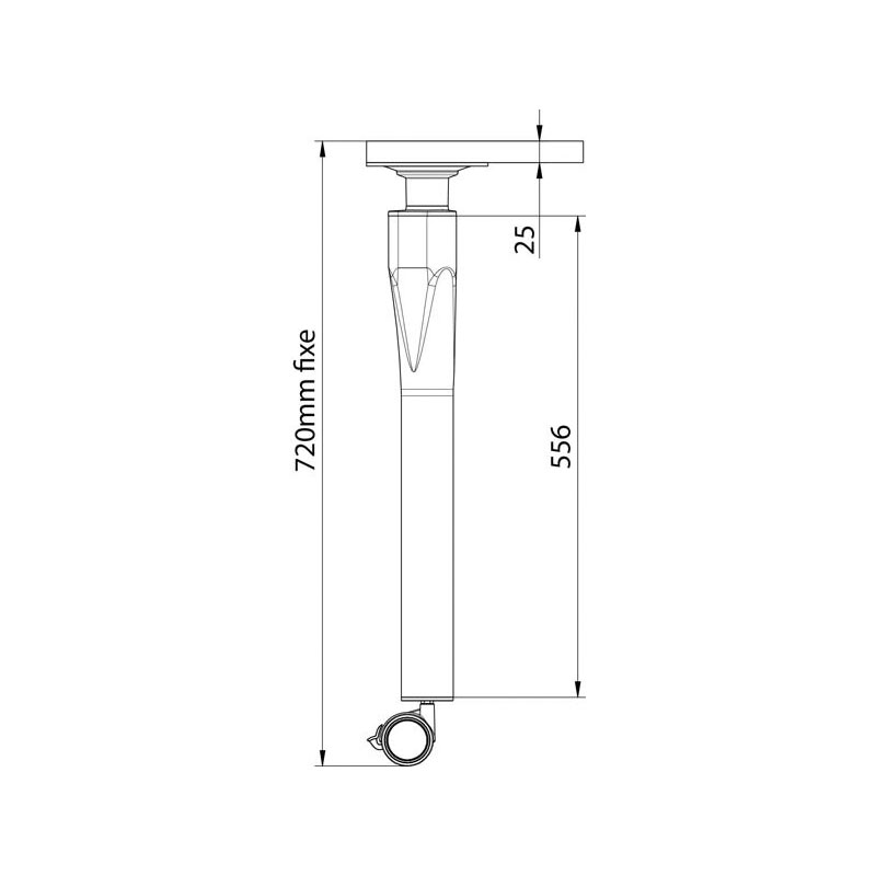 Diamètre : 55/80 mm (55 en partie basse et 80 en partie haute).Livré avec roulette, platine et vis de fixation.