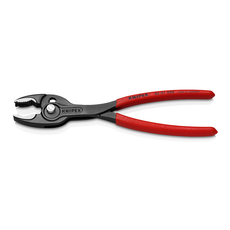 Combinaison unique : préhension frontale et latérale, charnière entrepassée et réglage par bouton-poussoir permet de travailler même dans des espaces d'installation exigus mâchoire frontale à accroche élevée capacité de préhension frontale et latérale pour des diamètres et des largeurs sur plats de 4 à 22 mm préhension frontale fiable des pièces plates avec système à trois points préhension, serrage et desserrage de vis avec des têtes et des filetages usés articulation coulissante à 5 positions de réglage avec ajustement par bouton système anti-pincement de la pince réduit le risque de doigts écrasés denture forgée en acier électrique au chrome-vanadium, trempée à l'huile, également trempée par induction à une dureté d'environ 61 HRC.