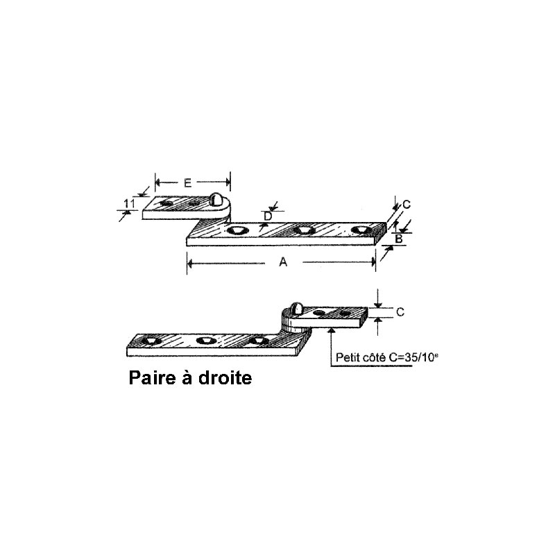 Pivot coudé laiton poli avec petit côté pour l'épuipement d'une porte.Vendu à la paire.