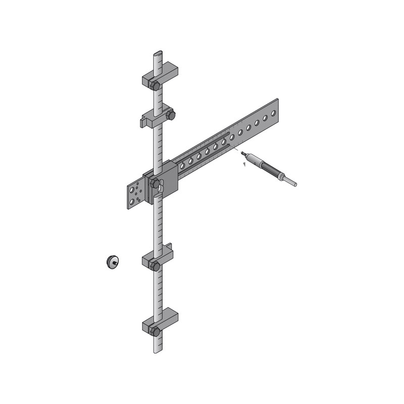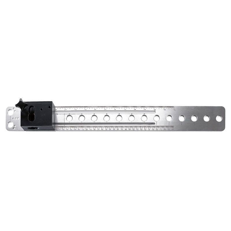 Plaque de perçage réglable en profondeur pour le gabarit de perçage AccuraPermet de percer précisément en système 32 les profondeurs de caisson pour fixer les coulisses, de percer les embases de charnières et repérer les axes de perçage charnière.Le perçage grace à la mèche à douille est bien perpendiculaire au panneau pour faciliter une fixation aux bonnes dimensions de pose.Également utilisable pour une faible profondeur de corps de meuble grâce au réglage en profondeurUtilisable pour :