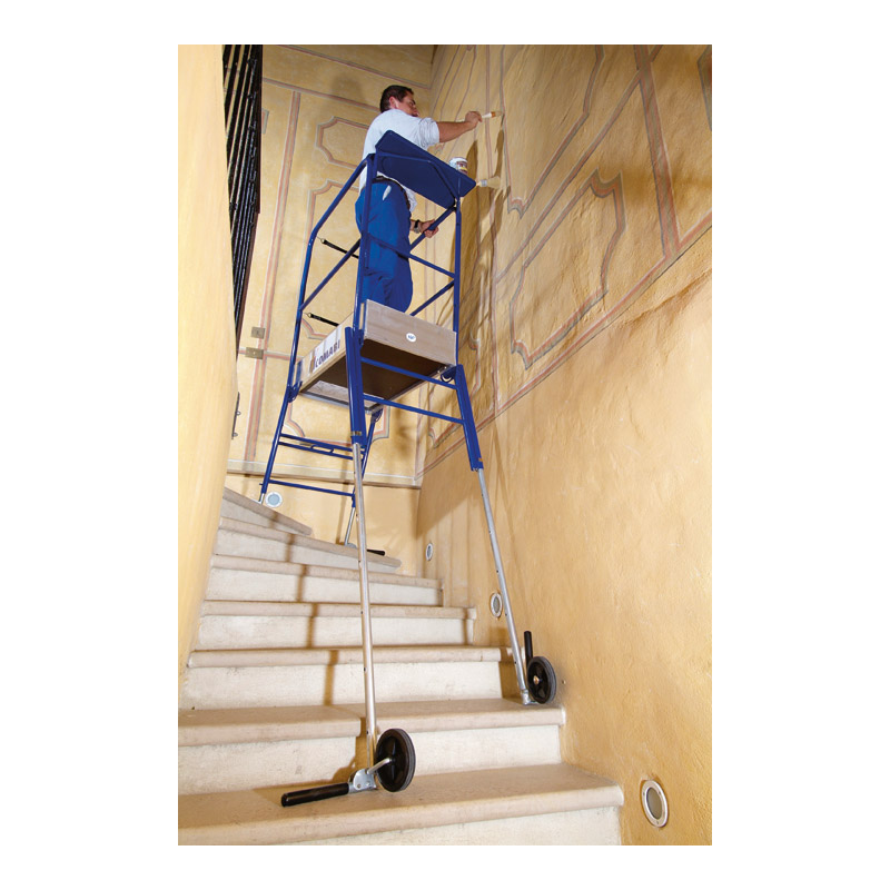 1 m d'amplitude de réglage des pieds pour travail dans les escaliers hélico'efdaux réglage indépendant des 4 pieds stabilisateurs intégrés repliables sécurité maximum : nouveau portillon conforme aux exigences des chantiers publics dimensions plancher : 0,90 x 0,50 m dimensions replié : 645 x 1425 x 285 mm.