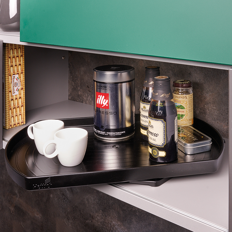 Plateau pivotant à 360°, dans les 2 sens, permettant d'accéder facilement à tout ce qui est en arrière plan en le faisant passer vers l'avant. Tout est parfaitement accessible, et rien n'est oublié.Utilisation dans les réfrigérateurs ou les meubles.