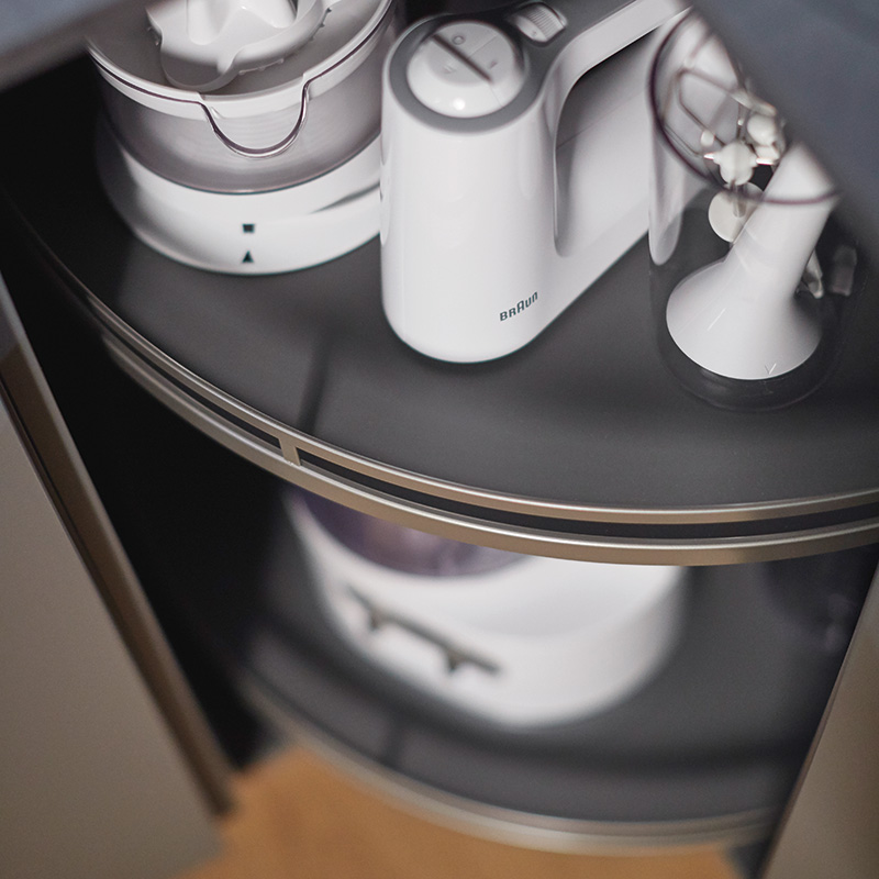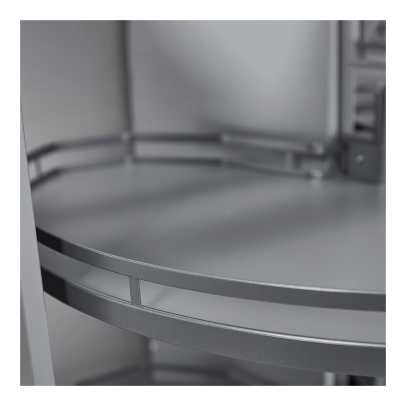 Utilisable avec ferrure Revo 90.Fond mélaminé traité anti glisse.Bordure et galerie fil plat en acier.Vendu au jeu de 2 plateaux.