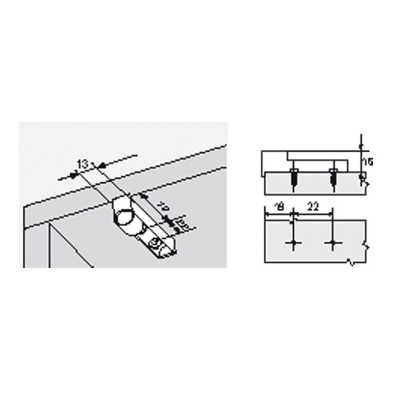 Avec butée de positionnement. Largeur 13 mm. Pour amortisseur Ø 10 mm. Pose en applique. Fixation invisible.