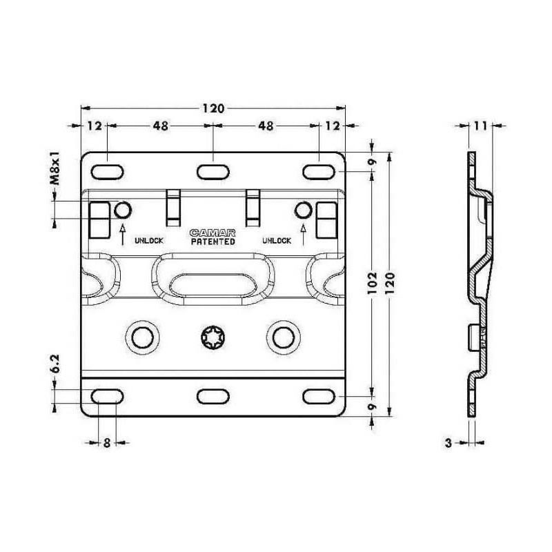 Platine acier zingué avec système anti-décrochage.
