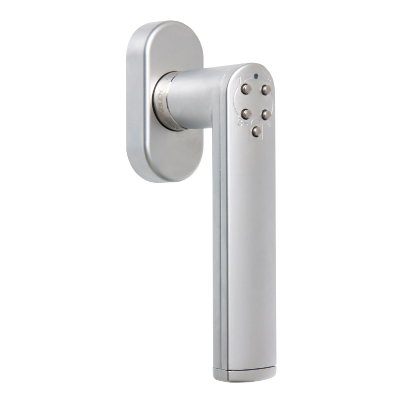 Fonctionnement :- possibilité de verrouiller dans toutes les positions à 90° (compatible oscillo-battant)- 1 code administrateur- jusqu'à 5 codes utilisateurs (à 6 chiffres, sur la base des nombres de 1 à 4)- verrouillage en cas de code erroné répété- facilité d'installation sans câblage- indicateur de charge de pile sonore et visuel-