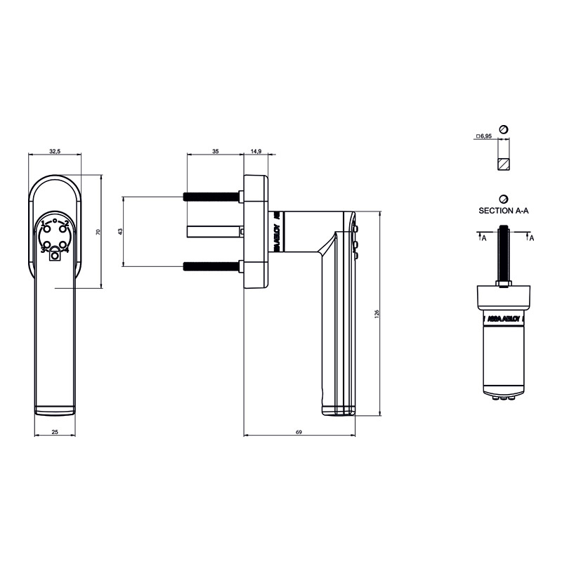 Poignée sur platine avec verrouillage électronique à code.Livré avec carrés de 7mm interchangeables (longueurs 35,40,55mm).Clé pour compartiment piles.2 piles AAA (durée 15 000 utilisations environ).Livré avec 2 vis M5 standards et 2 vis de sécurité.