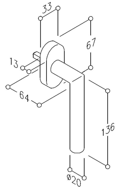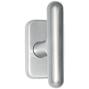 Poignée sur platine avec carré flottant de 7 mm dépassement 32 ou 35 mm. Avec cran d'arrêt 90°.Plots Ø 10 mm.Fixation invisible. Livré avec vis M5 x 45 mm.
