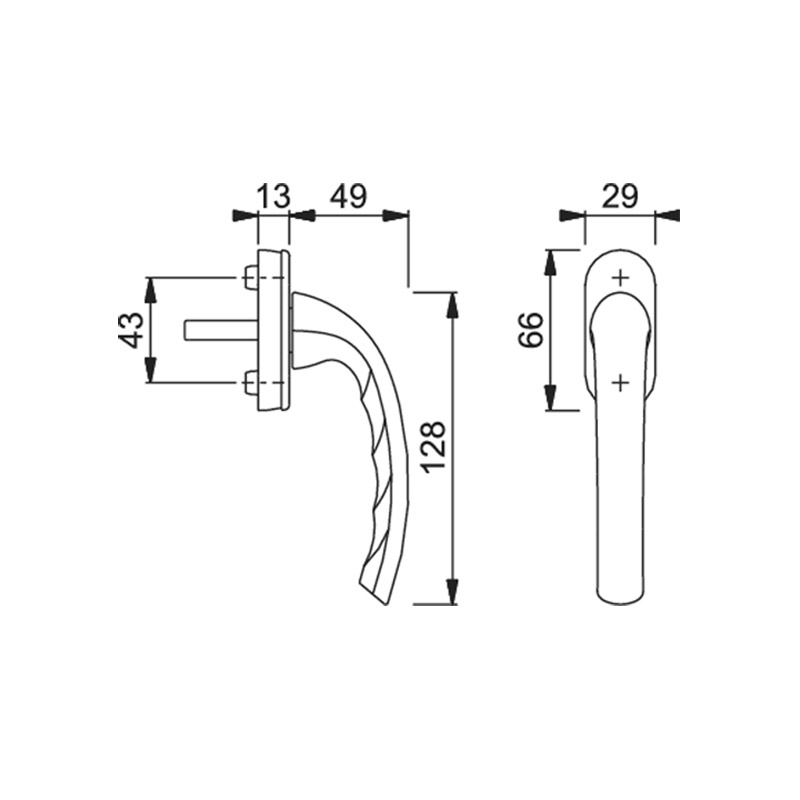 Poignée de fenêtre sur platine rectovale modèle 0710/U26, pour fenêtre à ouverture oscillo-battante