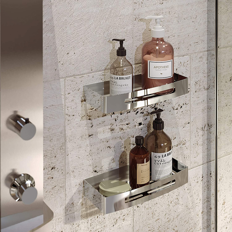 Porte objets/savon pour douche, en fil inox plat.Fixation à visser.