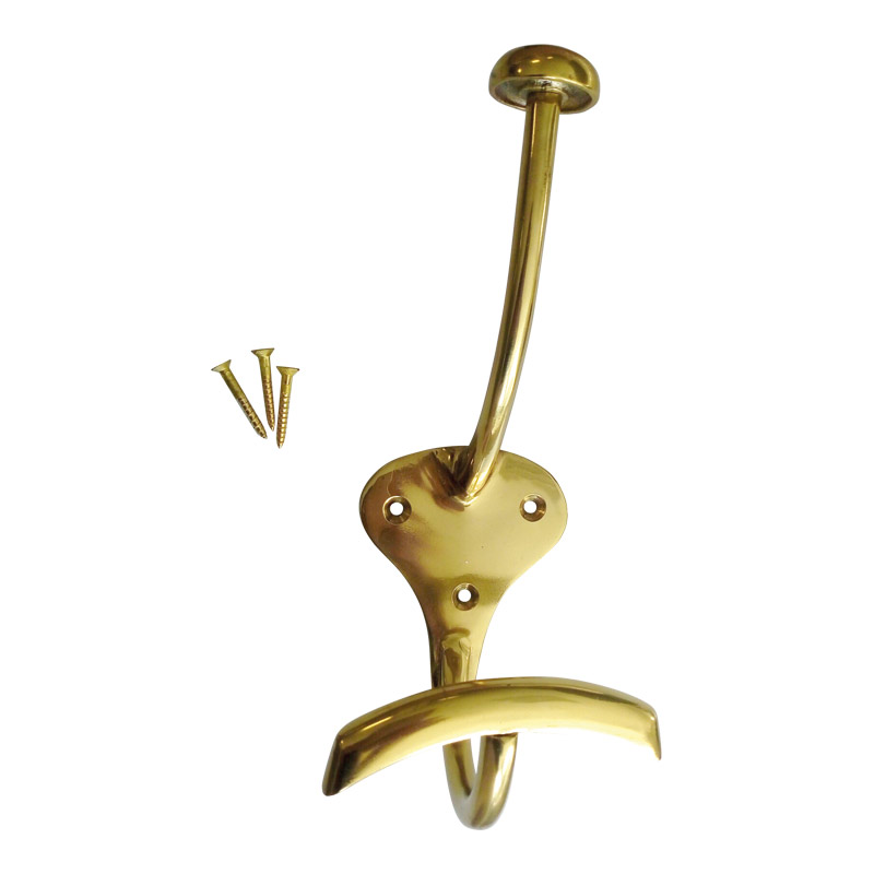 Porte chapeau double crochet en laiton.Platine de fixation largeur 64mm. Livré avec 3 vis laiton.