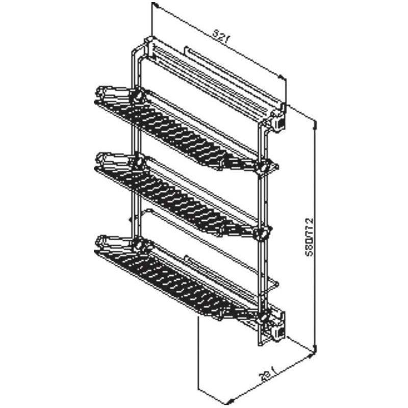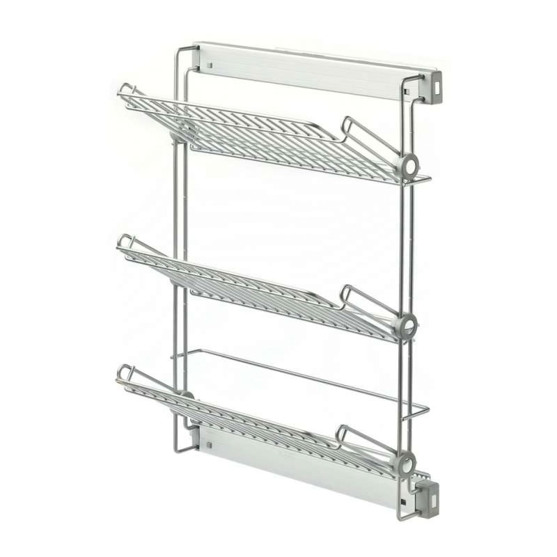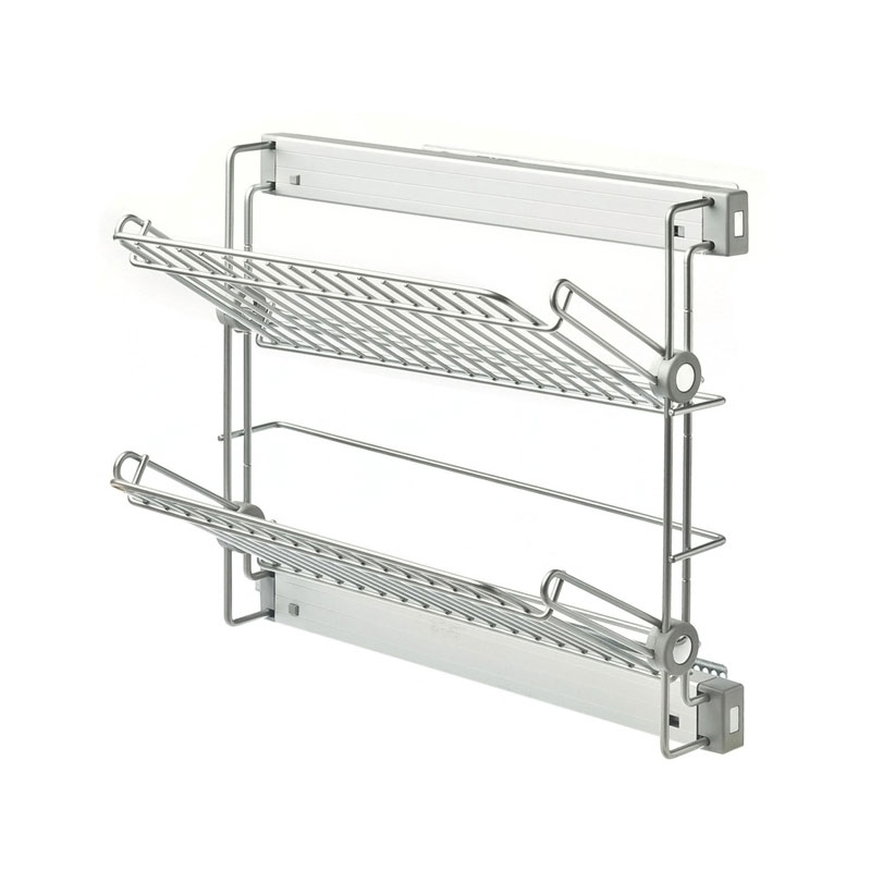 En fil d'acier.Non réversible.Sur coulisses avec rappel en fin de course sur amortisseur, sortie totale.Fixation latérale.Livré avec fixations.