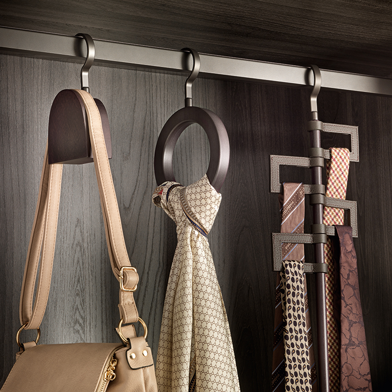 Crochet en zamak peint avec poudre epoxy, finition gris brun métalisé.