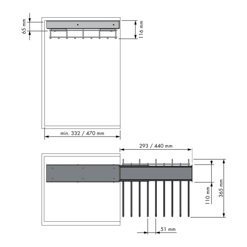 Le porte-pantalons extractible est un système coulissant intégré qui permet de ranger jusqu’à 9 pantalons. Il se monte dans un volume meuble prévu à cet usage, pour un accès facilité et un rendu esthétique sobre et raffiné. Le mécanisme inclut des supports antidérapants et un amortisseur pour un mouvement fluide. Il comporte aussi un espace rangement “porte-objets” muni d’un tapis antiglisse.