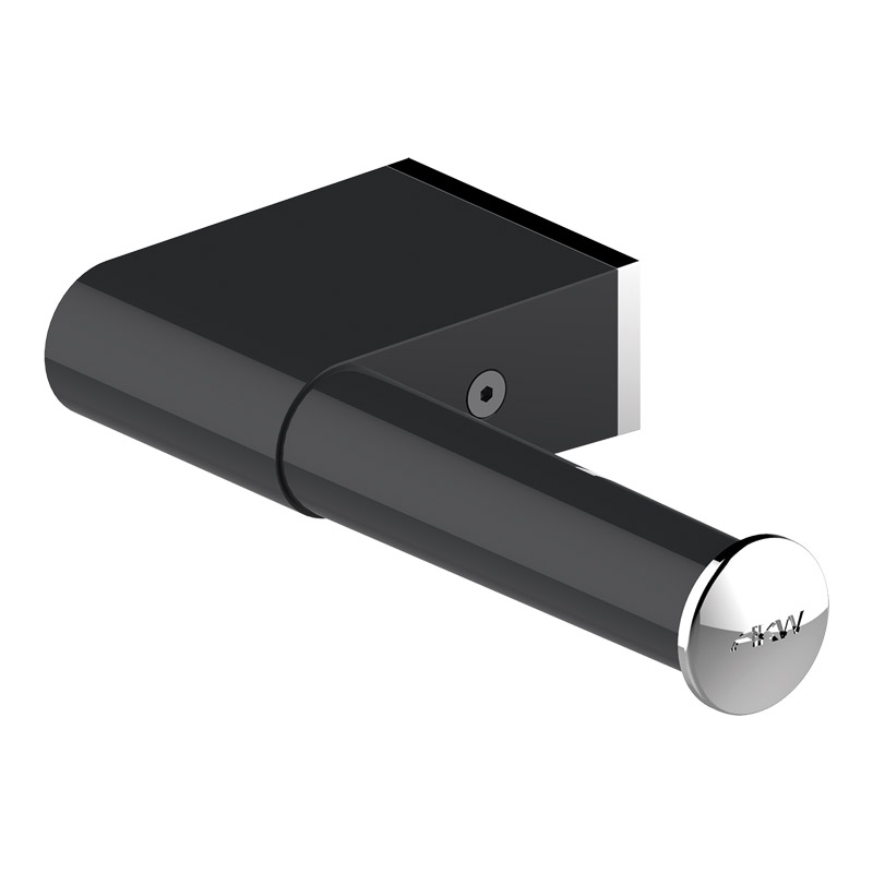 Distributeur de papier toilettes en tube ABS coloré blanc ou noir.Fixation en alliage de zinc moulé chromé.Réversible.Fixation invisible.Design très épuré et moderne.