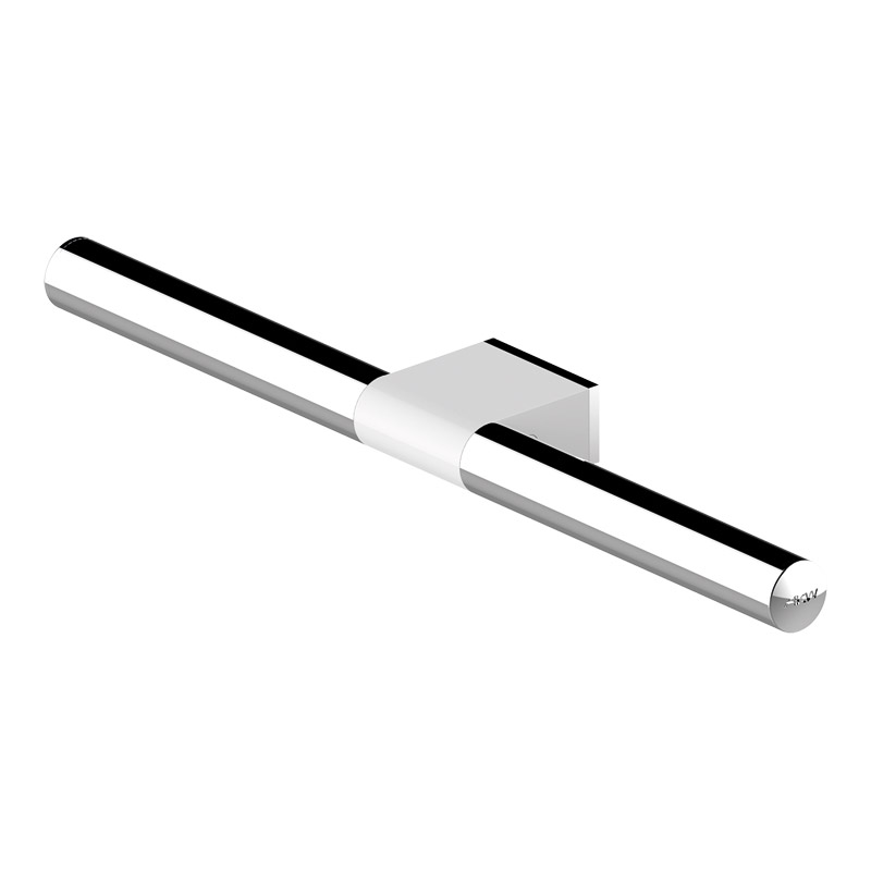 Double tube rond en acier inoxydable poli.Support en alliage de zinc moulé chromé, nylon renforcé en fibre de verre et ABS coloré blanc ou noir.Fixation invisible.Design très épuré et moderne.