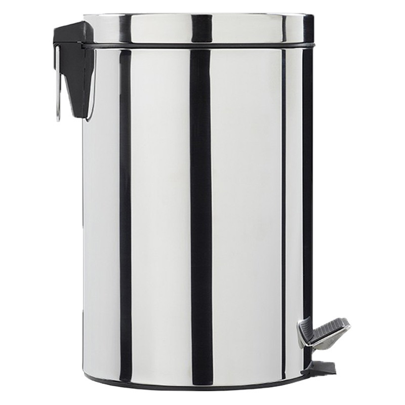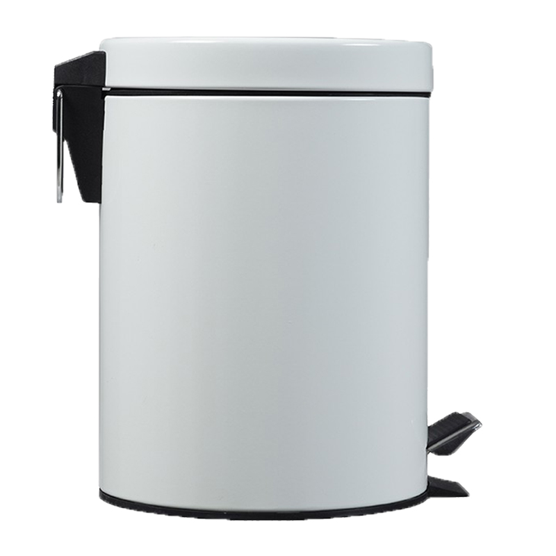 Corps et couvercle métal. Pédale en plastique.Seau intérieur plastique noir avec anse métal.Socle plastique noir anti-basculement.Prévoir sac de 5 L.