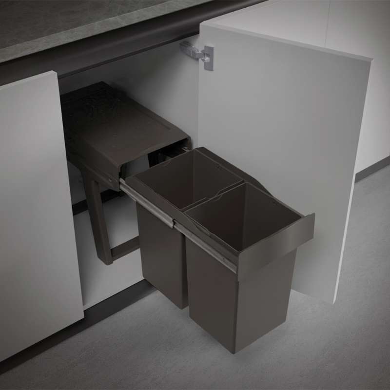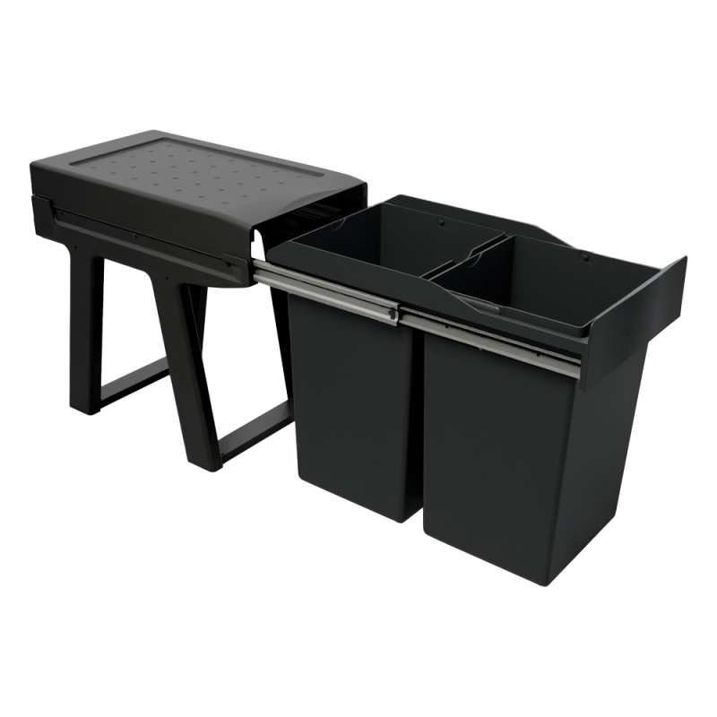 Poubelles pour le tri sélectif avec structure au design innovatif en polypropylène recyclé.Grace à la structure en polypropylène, cette nouvelle solution est produite entièrement à partir de plastique recyclé certifié. Dimensions compactes, grande capacité et sortie totale.