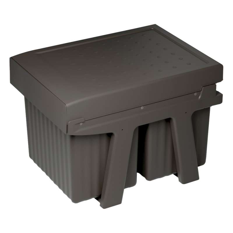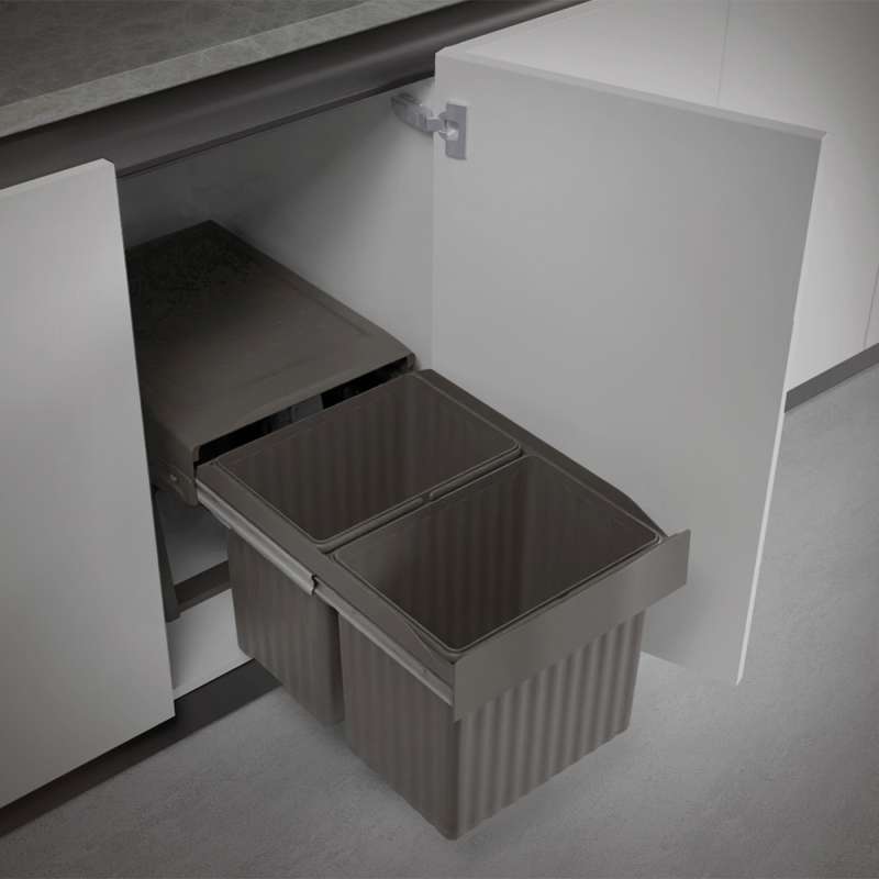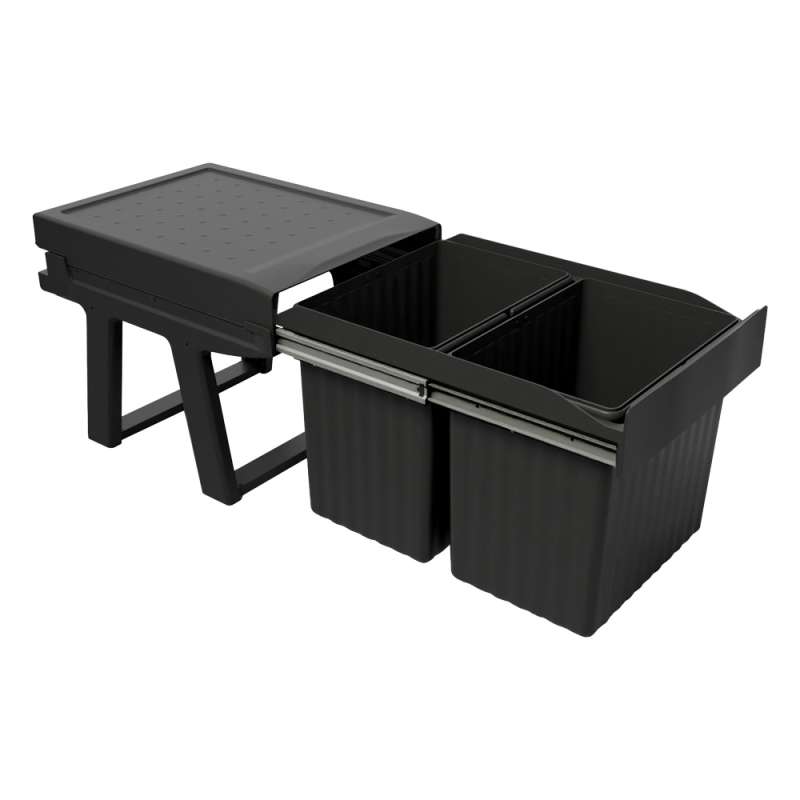 Poubelles pour le tri sélectif avec structure au design innovatif en polypropylène recyclé.Grace à la structure en polypropylène, cette nouvelle solution est produite entièrement à partir de plastique recyclé certifié. Dimensions compactes, grande capacité et sortie totale.