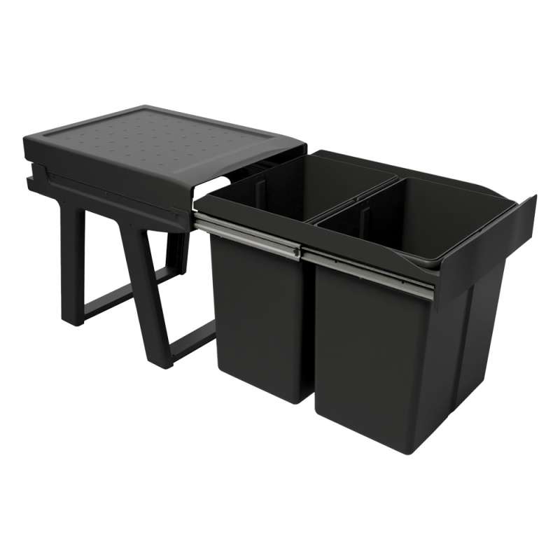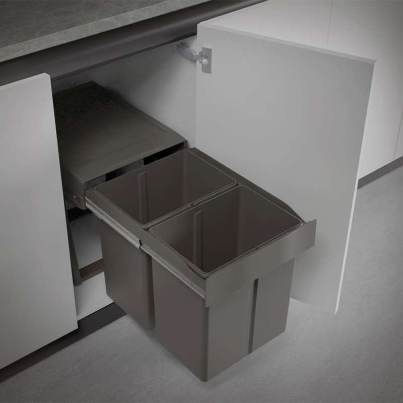 Poubelles pour le tri sélectif avec structure au design innovatif en polypropylène recyclé.Grace à la structure en polypropylène, cette nouvelle solution est produite entièrement à partir de plastique recyclé certifié. Dimensions compactes, grande capacité et sortie totale.