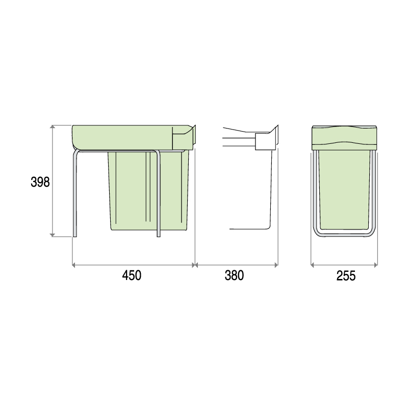 • Poubelle coulissante plastique sur armature métallique