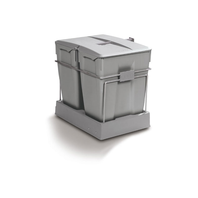 Collecteur grande capacité avec couvercle automatique.Le plateau qui accueille les bacs est fixé au fond du meuble et est équipé d'une glissière à sortie totale.Pour caisson de largeur 450 mm mini.