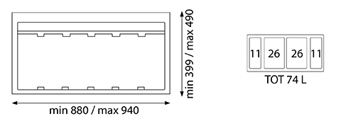 Poubelle pour tiroir disposant de 2 bacs de 11L et 2 bacs de 26L.