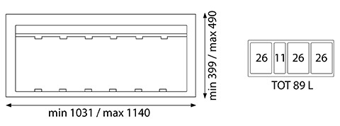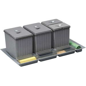 Poubelle pour tiroir disposant de 1 bac de 11L et 3 bacs de 26L.