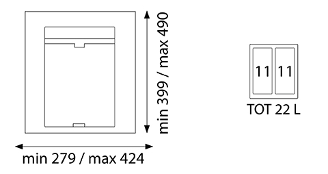 Poubelle pour tiroir disposant de 2 bacs de 11L.