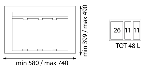 Poubelle pour tiroir disposant de 2 bacs de 11L et 1 bac de 26L.