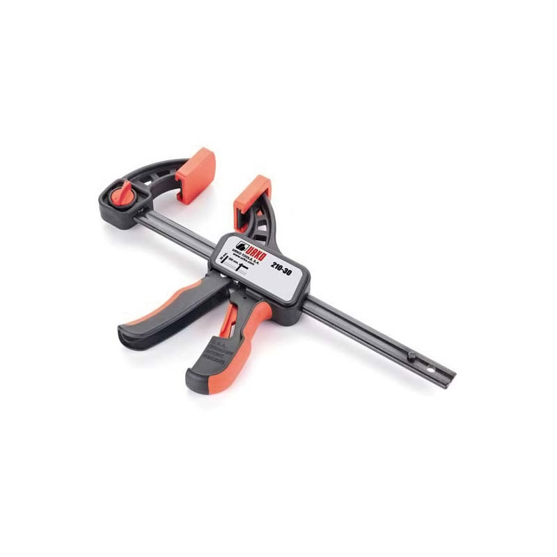 Presse à serrage une main.Têtes nylon renforcées de fibre de verre.Supports de protection en plastique souple pour des serrages délicats.Têtes réversibles pour travailler en extension.Poignée antidérapante ergonomique.Bouton pour déblocage instantané.