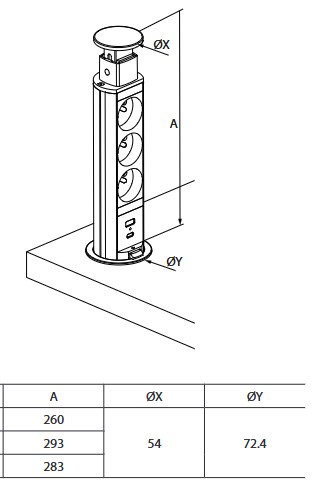Incara Tower 60, produit escamotable à encastrer dans les tables de réunion ou plan de travail, propose une offre de connexion électrique et de données en toute discrétion avec son diamètre réduit de 60mm