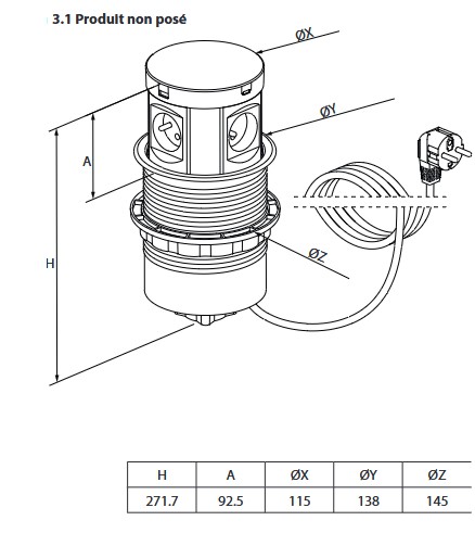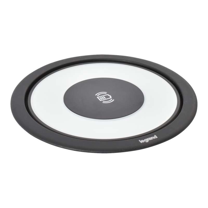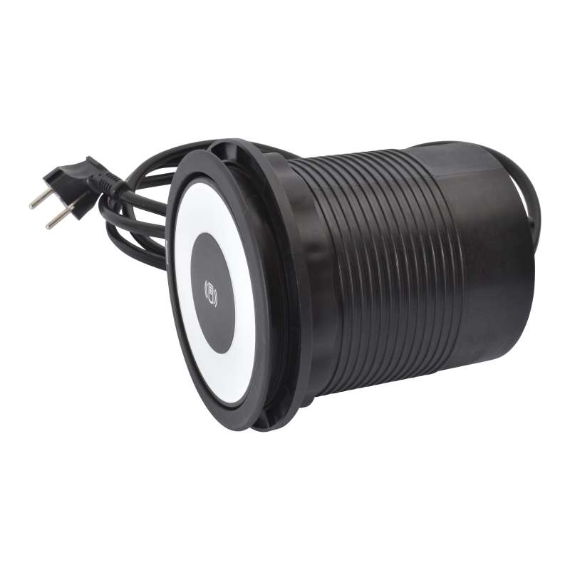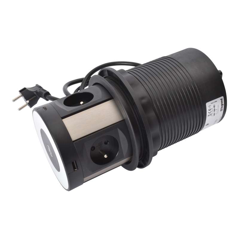 Incara Tower 120, produit escamotable à encastrer dans les tables de réunion ou un autre mobilier offre une électrification à 360° avec 4 prises et 4 chargeurs USB tout autour du produit ainsi qu'une surface de chargement sans fil induction