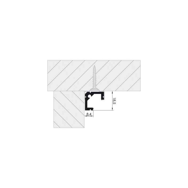 Profil aluminimum pour pose d'angle. Section 18,5x18,5 mm. Fixation clipsable (voir accessoires).