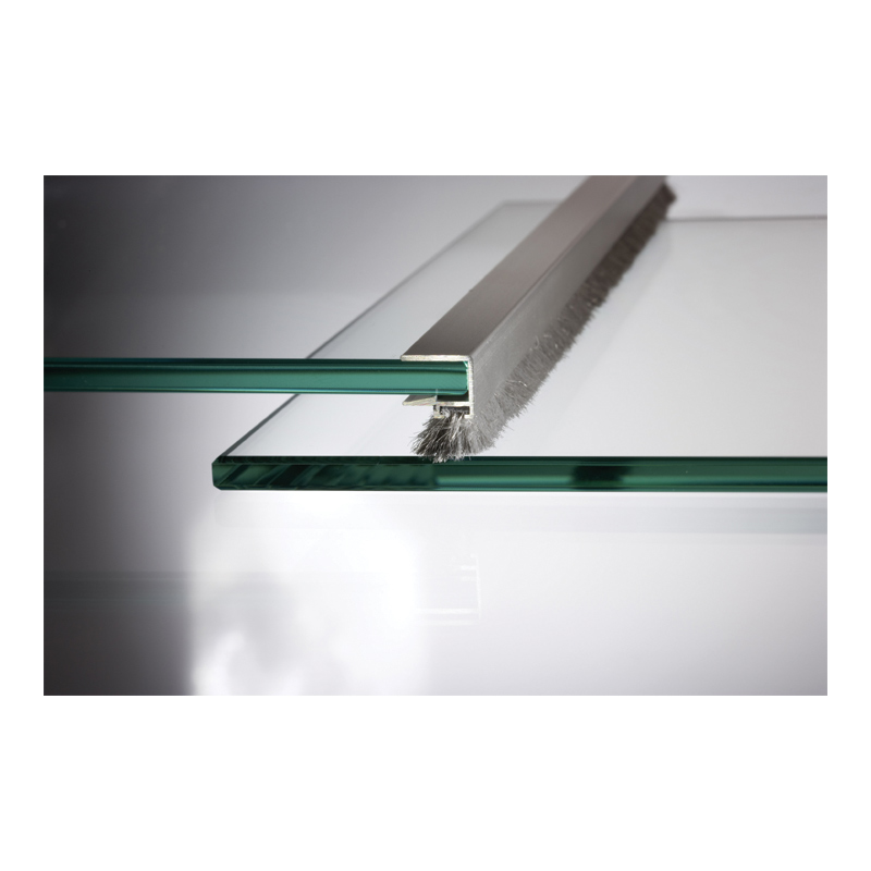 Profil alu avec brosse antipoussière, à emboiter sur un côté de la porte verre coulissante pour une étanchéité et une protection optimales de la vitrine.