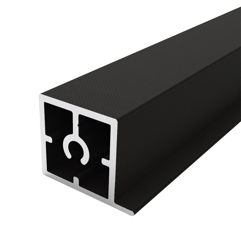 Profil aluminium en tube carré pour la conception de structures étagères diverses, doté d'un plat sur le côté permettant la pose d'une étagère bois épaisseur 19mm dans la structure.La liaison entre les différents profils se fait à l'aide de pièces de jonction et connecteurs à plusieurs voies.