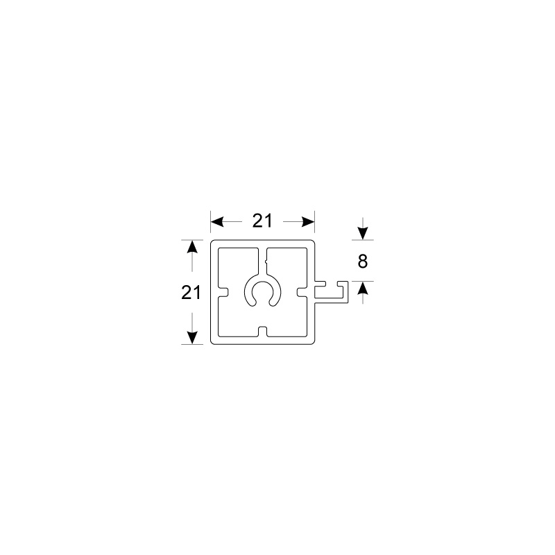 Profil aluminium en tube carré pour la conception de structures étagères diverses, doté d'un rebord sur le côté permettant la pose d'une étagère verre de 6-8mm dans la structure.Avec un verre d'épaisseur 6mm, il faut insérer le joint pour verre réf. 467 97000 02502 dans le rebord.La liaison entre les différents profils se fait à l'aide de pièces de jonction et connecteurs à plusieurs voies.