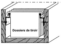 Profil dossier suspendu en aluminium pour montage dans un tiroir.