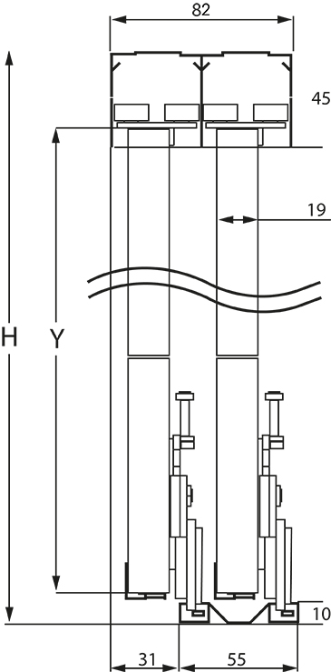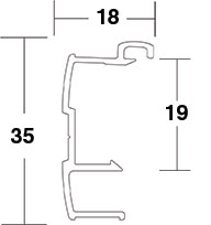 Profils aluminium pour la constitution de portes coulissantes de placard.Pour panneaux d'épaisseur : 19 mm.Largeur mini de panneaux : 500 mm (ou 625 mm avec 2 amortisseurs par vantail)Largeur maxi de panneaux : 1100 mm.
