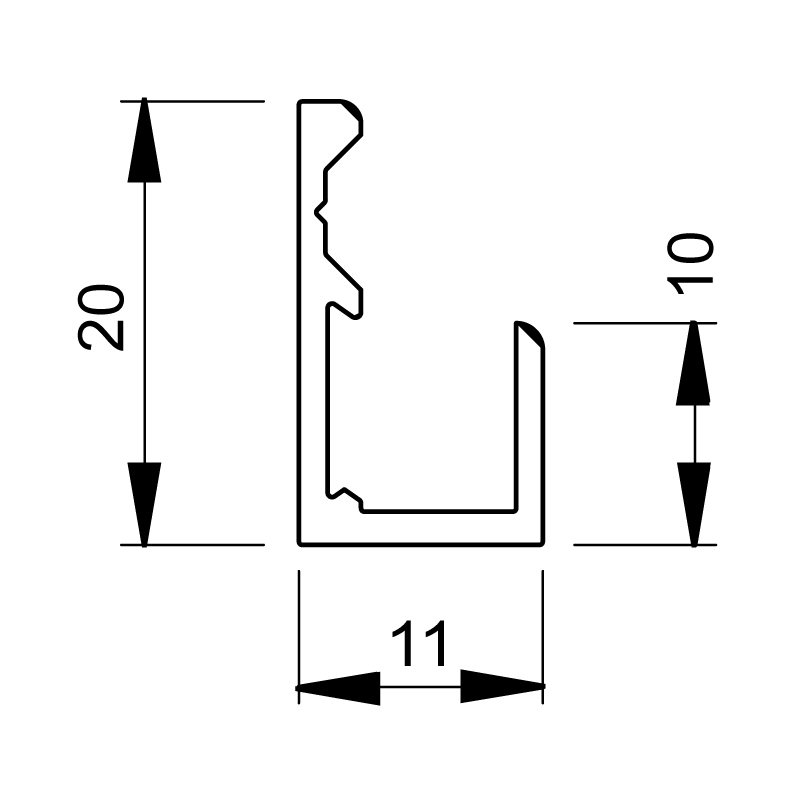 Profilé de fixation pour miroir jusqu'à 6mm d'épaisseur.A compléter avec des embouts de finition (non inclus) qui viennent s'emboiter à chaque extrémité.