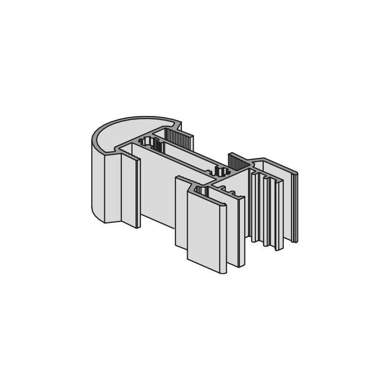 Profil vertical constituant la structure de l'aménagement ELLIPSE, particulièrement destiné à un montage sol/mur ou un montage mural en y ajoutant pied et fixation platond ou mural.Ce profil est ouvert sur un chant pour pouvoir y insérer une bande led et le profil diffuseur PVC. Le chant ouvert est à positionner face au mur.Les rainures de chaque côté du montant permettent la fixation des divers accessoires ELLIPSE.Recoupable.