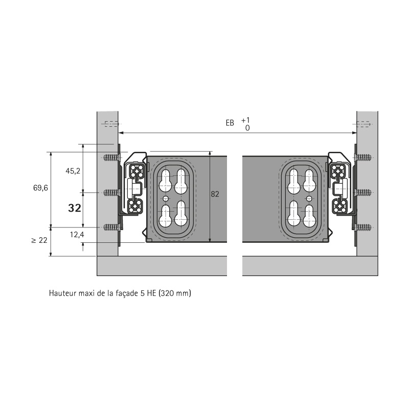 Coulisse Quadro duplex sortie totale à super extension avec galet différentiel.