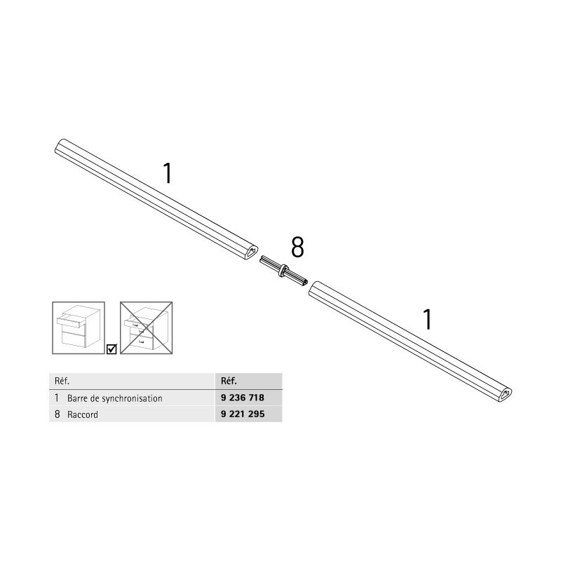 Dispositif d'assemblage pour barre de synchronisation P2O. Permet d'augmenter la longueur de la barre de synchronisation en assemblant 2 barres.
