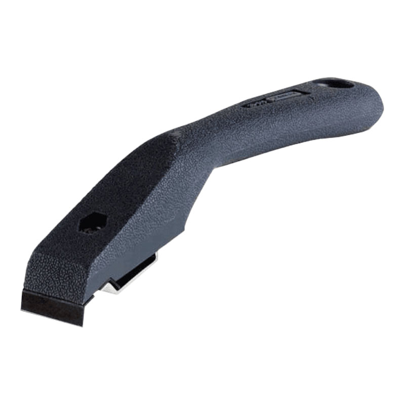 Poignée synthétique Lame 2 tranchants Possibilité de rangement d'une lame supplémentaire dans le corps Lame en acier trempé et réaffutable