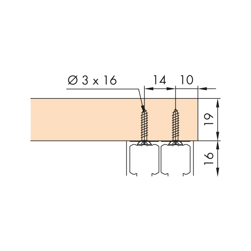 Rail percé.Pour panneau de 19 mm.