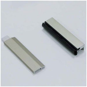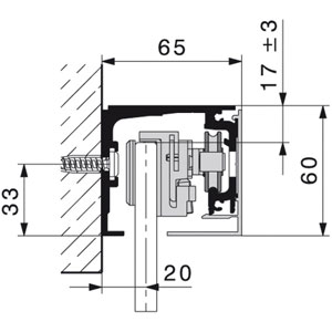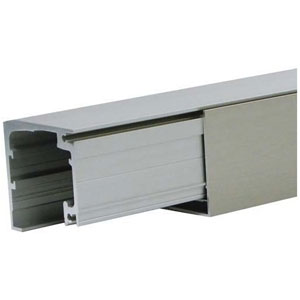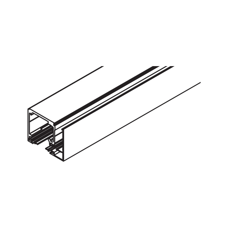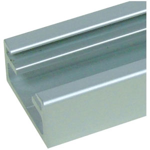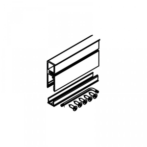 Rail de roulement percé pour montage mural sans glace fixe, et profil de recouvrement en équerre inclus.
