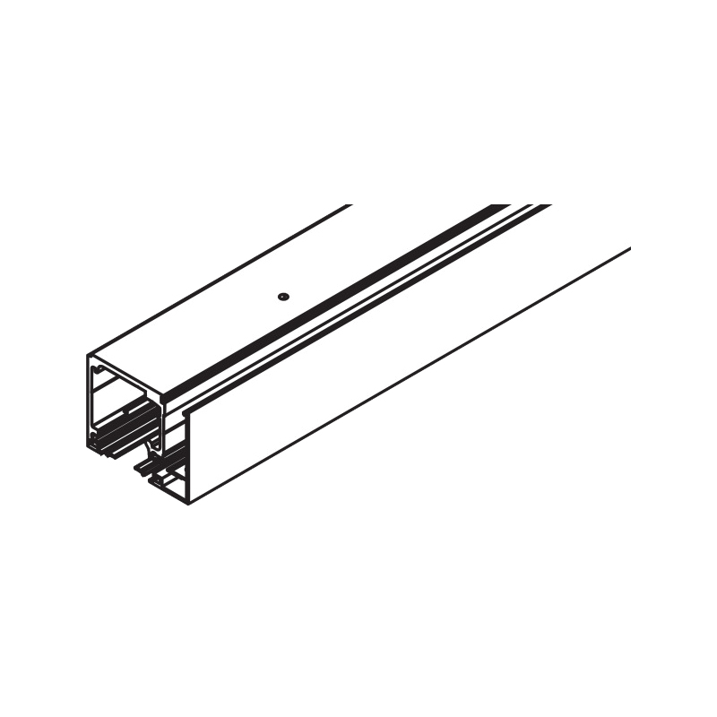 Rail de roulement percé pour montage au plafond sans glace fixe, et profil de recouvrement en équerre inclus.
