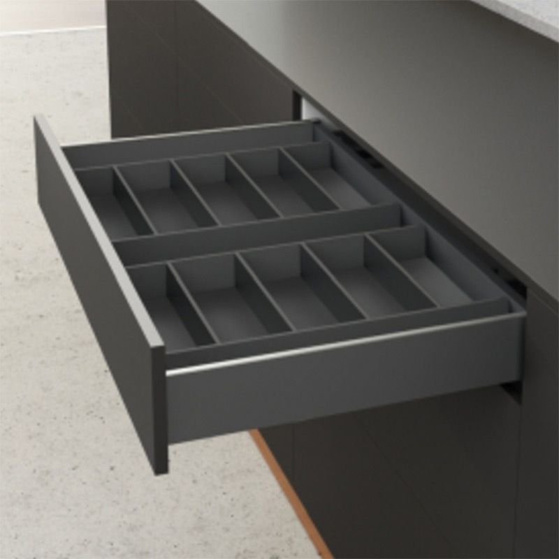 Pour tiroir AvanTech YOU, pour caisson de largeur mini 350 mm.Pour tiroir ArciTech, pour caisson de largeur mini 400 mm.2 pièces sont utilisées pour caisson de largeur à partir de 800 mm.Il est recommandé d'utiliser un tapis antidérapant.Combinaison possible avec OrgaTray 270.