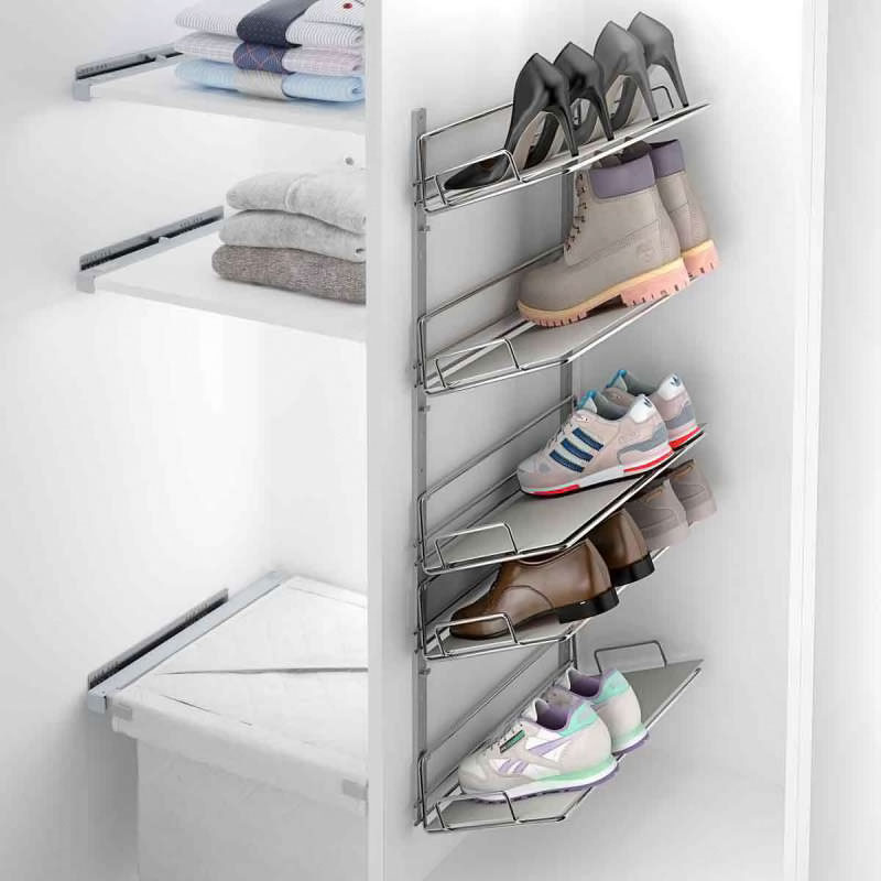 En fil d'acier.Les supports se fixent sur crémaillères.3 ou 5 niveaux.