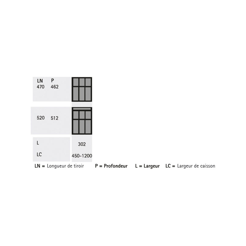 Utilisable dans les tiroirs équipés de profil InnoTech Atira profondeur 470 et 520.